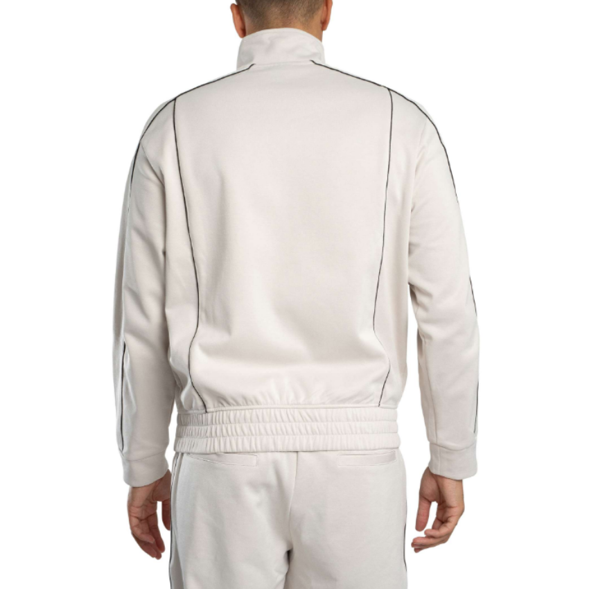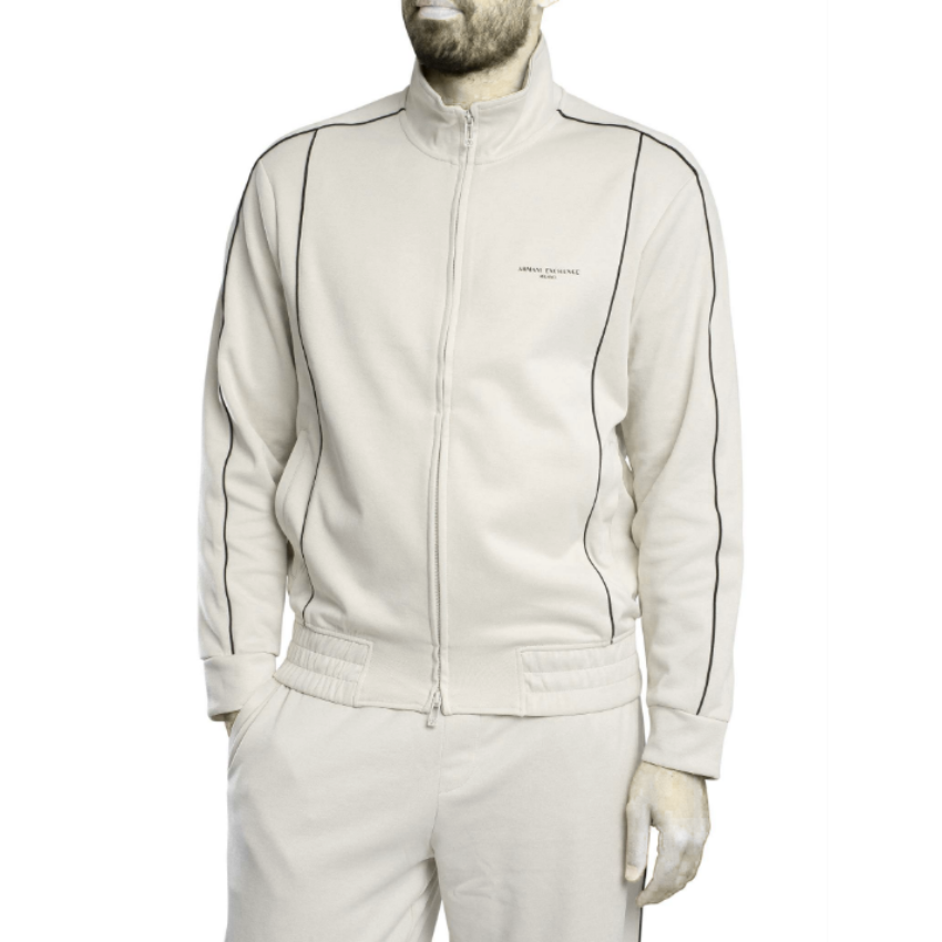 Zip-up sweatshirt made from smooth, comfortable cotton, chosen for its softness and versatility in any season. Its pleasant-to-the-touch texture ensures a relaxed yet refined fit and remarkable freedom of movement. This piece is designed for a casual and functional look, ideal for leisure, sports, or everyday comfort. Clean, well-defined details, such as the contrasting side stripes, emphasize its dynamic character and its ability to seamlessly integrate into a modern wardrobe, offering a touch of practicality and style