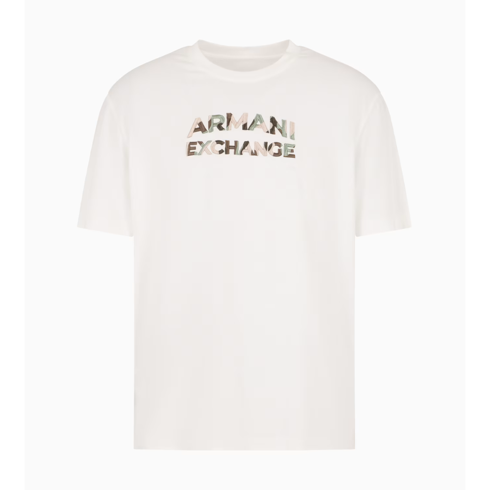 Regular fit T-shirt made of cotton jersey and personalized with a front print of the camouflage logo motif. This item is part of the ASV selection because the fabric is made with sustainable or certified recycled material: a model that combines the A|X style with the brand's commitment to ever-increasing attention
