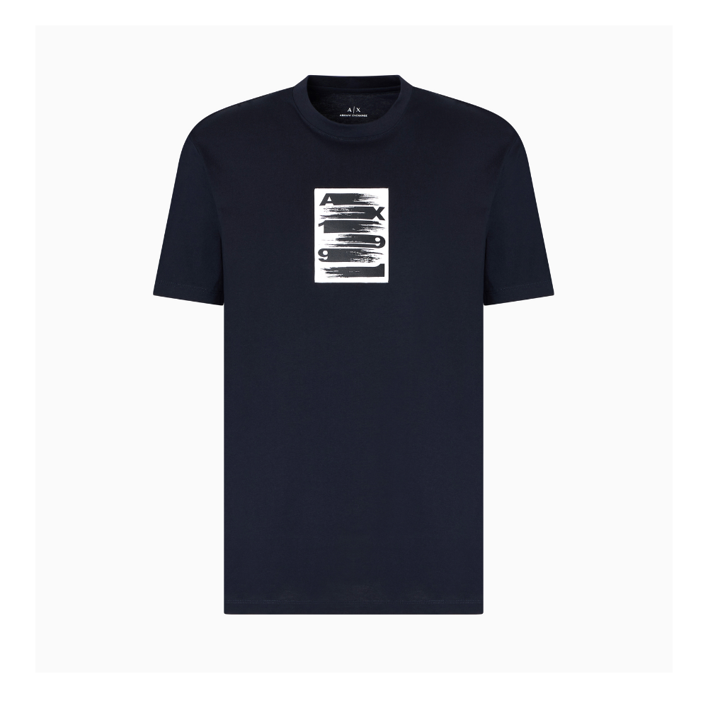 This Armani Exchange regular fit T-shirt is crafted from heavy cotton, ensuring both comfort and durability. Featuring a striking abstract logo on the chest, it adds a modern edge to a minimalist design. Its short sleeves and round neckline make it versatile for any casual or smart ensemble, effortlessly pairing with jeans or trousers. Perfect for those who appreciate quality and understated style in their everyday wardrobe.