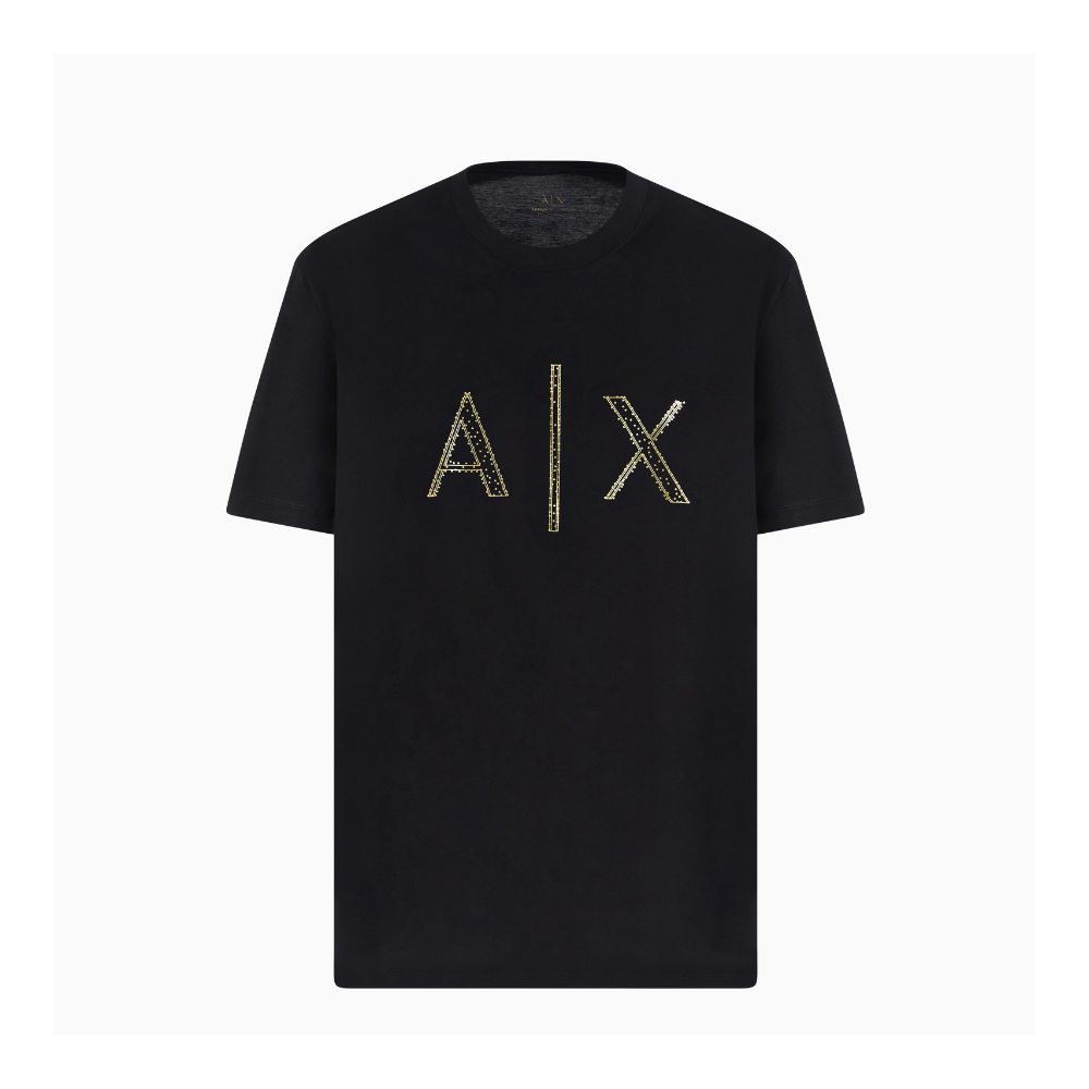 Experience the perfect blend of comfort and style with this Armani Exchange regular fit t-shirt. Crafted from 100% mercerized cotton, it offers a soft, shiny finish and a fresh, comfortable fit. The rhinestone-embellished logo adds a subtle sparkle, elevating your casual look with sophisticated flair. Ideal for pairing with jeans or tailored trousers, this short-sleeve tee is a versatile essential that brings elegance to everyday wear.