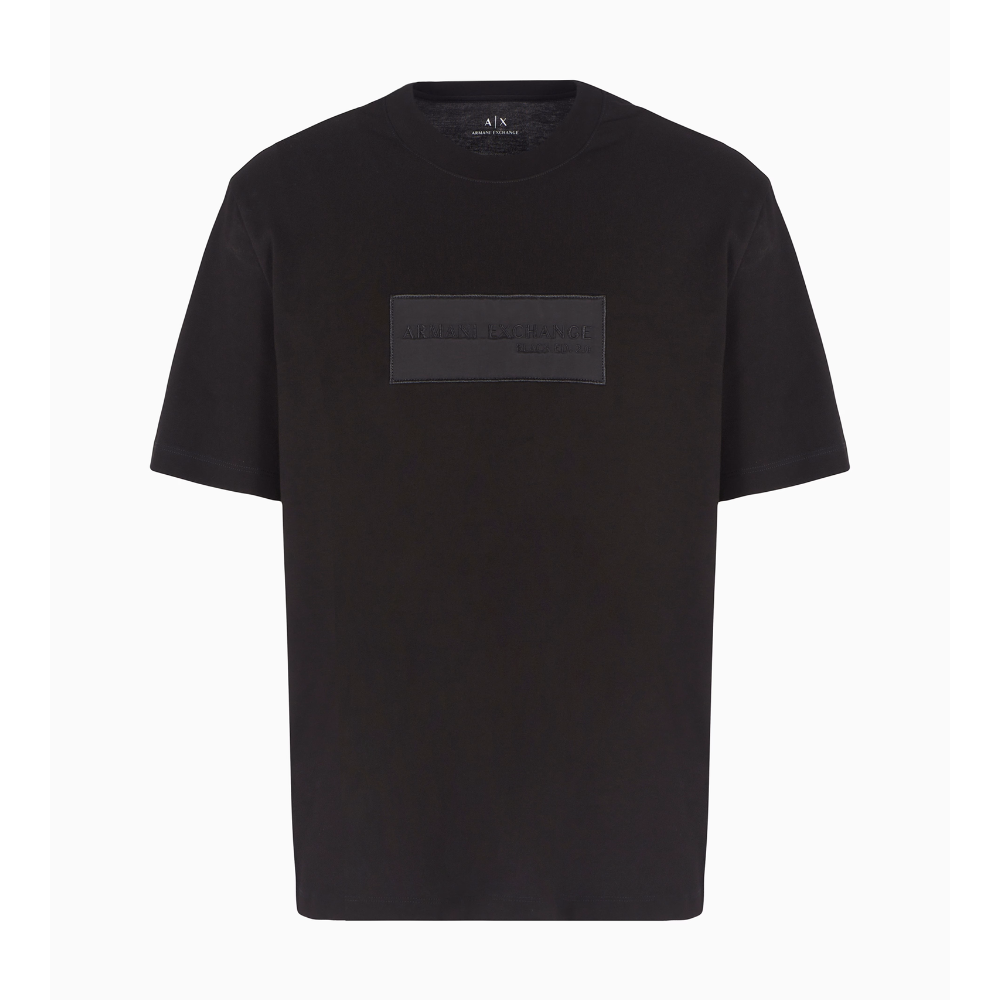 Essential design for this t-shirt where the protagonist is the color black: expression of the contemporary style of A|X Armani Exchange is the common thread of a part of the collection. This relaxed fit t-shirt features a maxi application on the front with logo, short sleeves and a round neckline.