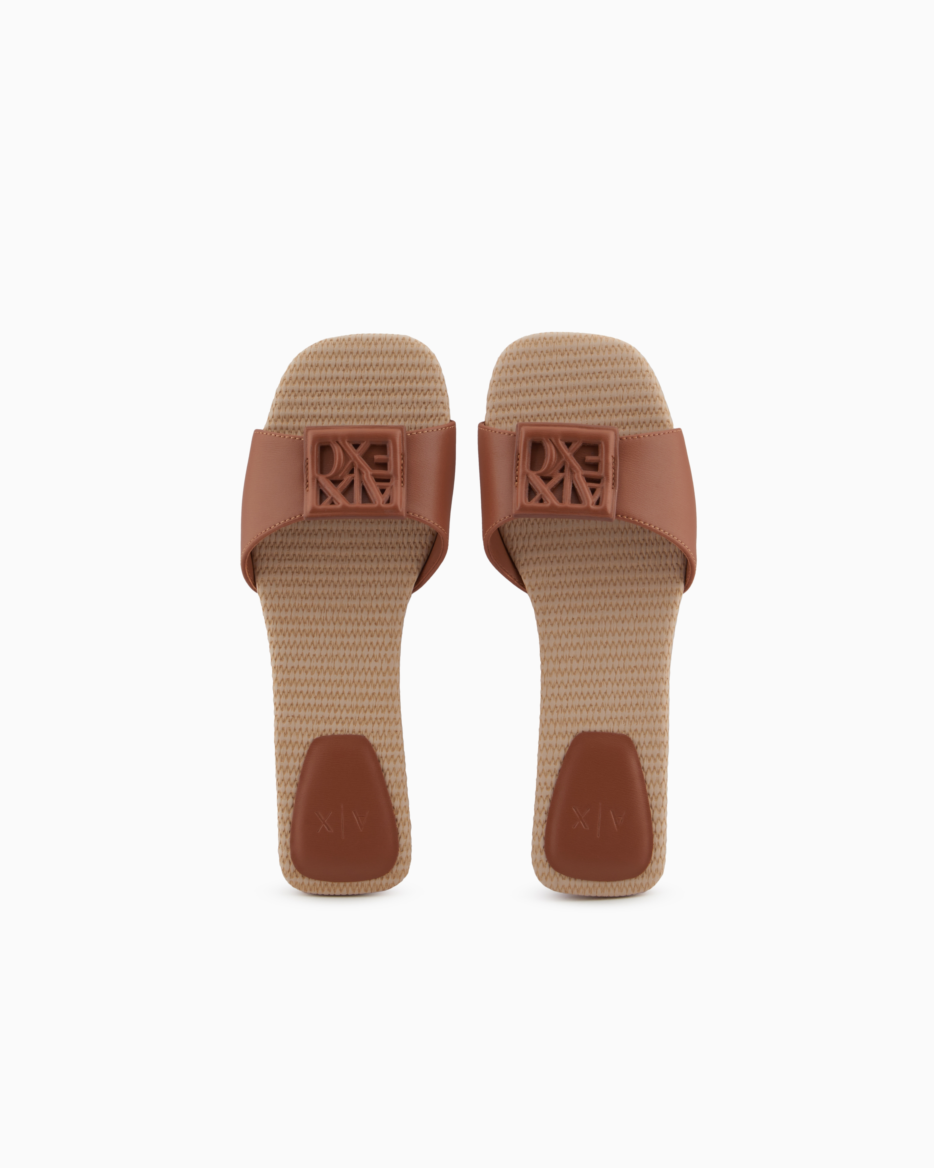 These eco-leather slippers offer comfort and style, with an elegant band that wraps around the foot. The tone-on-tone logo application adds a distinctive and discreet touch. Perfect for moments of relaxation or for a casual look, they are ideal for those seeking practicality without sacrificing refinement, ensuring a soft and comfortable fit.