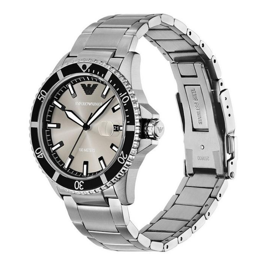 This 42mm World Explorer watch features a refined gray-toned beige sunray dial, three-hand date movement, and a stainless steel bracelet. Elevated design details like luminous accents on the hands, indexes, and bezel markings, and a magnifying window over the date at 3 o'clock, combined with the sport-driven design aesthetic, make this watch perfect for any occasion.