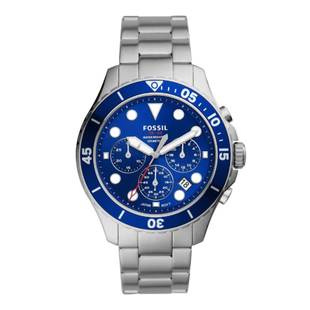 Fossil FS5724 Silver Stainless Steel Blue Dial Chronograph Quartz Watch for Gents - FS5724 - 100% Authentic with Official Warranty & Free Shipping Across Pakistan.