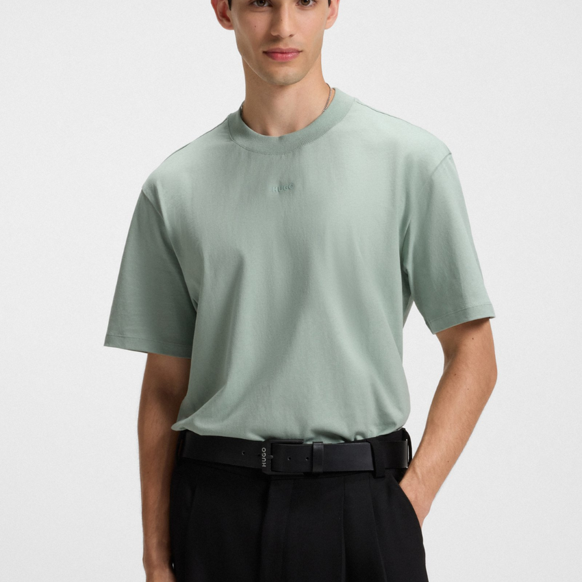 HUGO Dapolino Relaxed-Fit Cotton T-Shirt with Logo Print | Light/Pastel Green