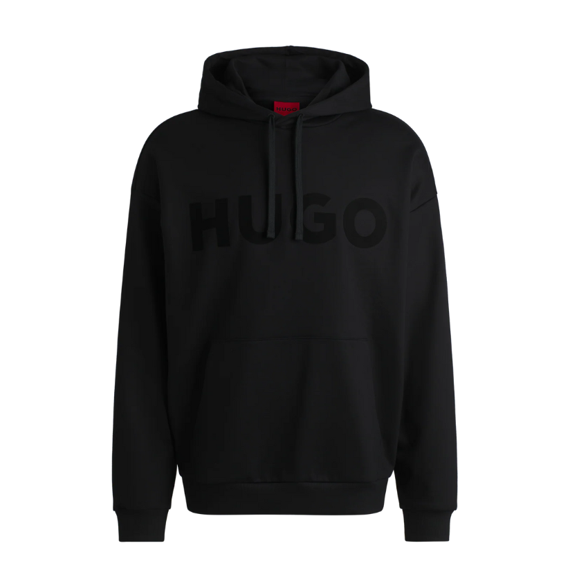 This HUGO hoodie is a stylish and comfortable choice for everyday wear. It features a classic design with a kangaroo pocket and a drawstring hood. The large HUGO logo on the front adds a touch of branding.