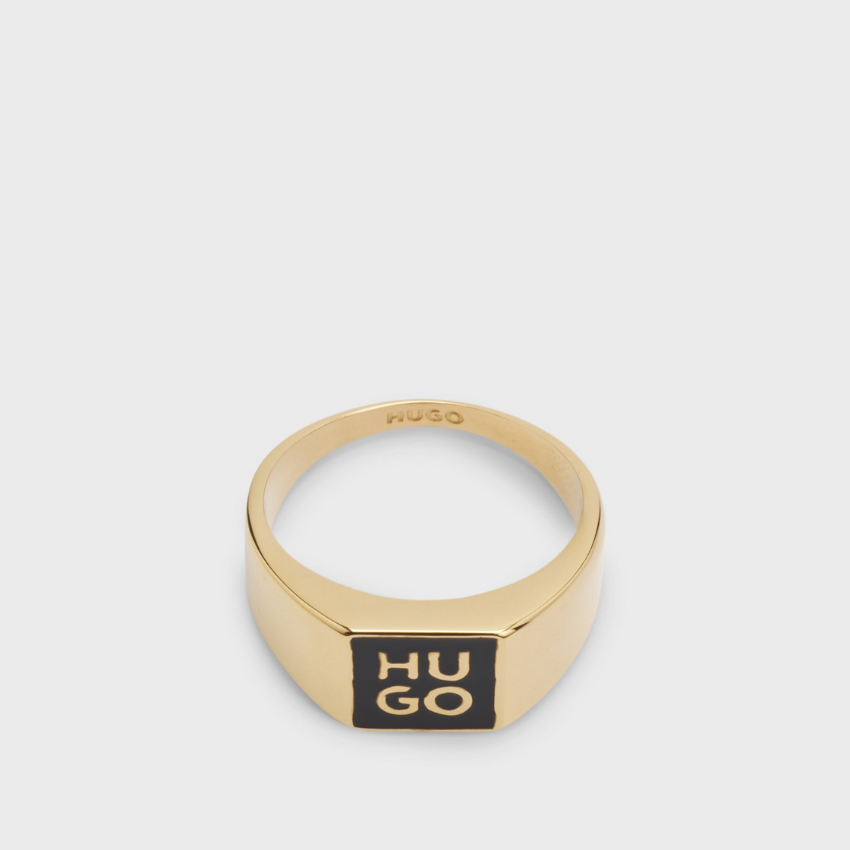 Hugo Gold Stacked-Logo Signet Ring with Enamel Insert