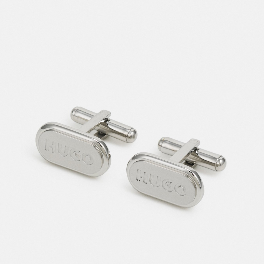 Hugo Oval-Shaped Silver Cufflinks with Engraved Logo