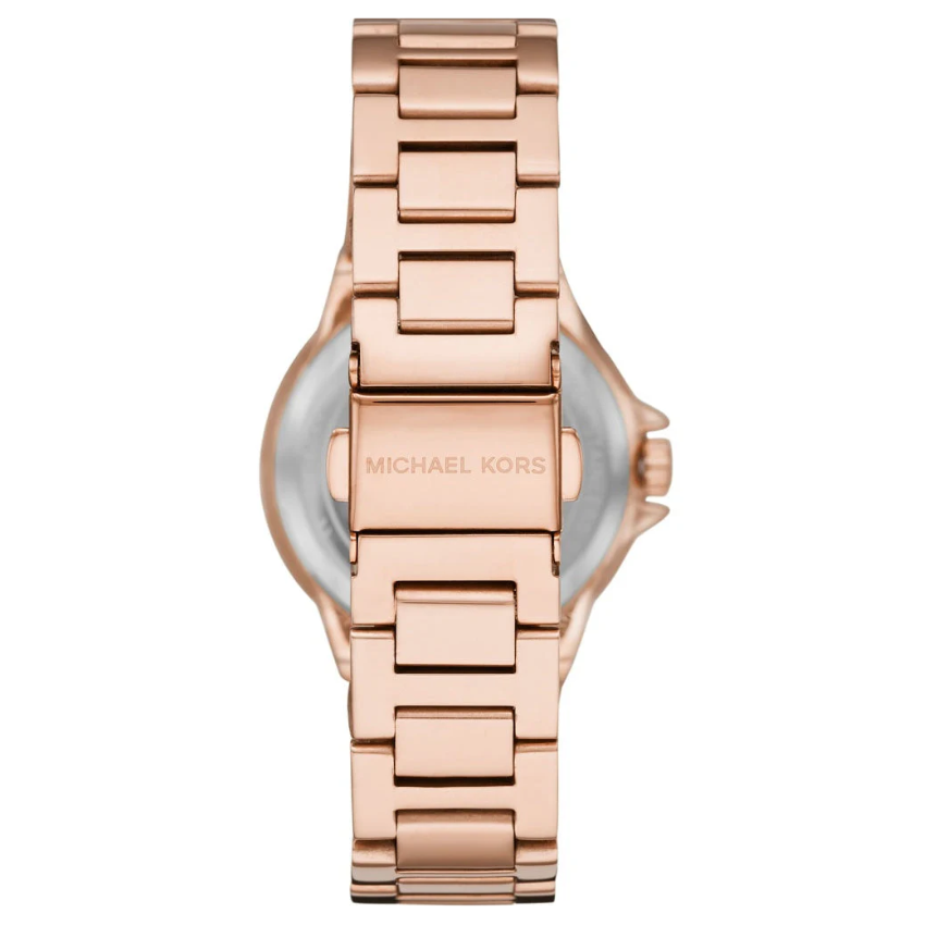 Introducing the Camille watch: a sleek yet glamorous addition to your wardrobe. With a pavé topring, understated sub-dials and rose gold-tone bracelet strap, this timepiece is an instant classic. Wear it with the season?s printed dresses for a polished touch.