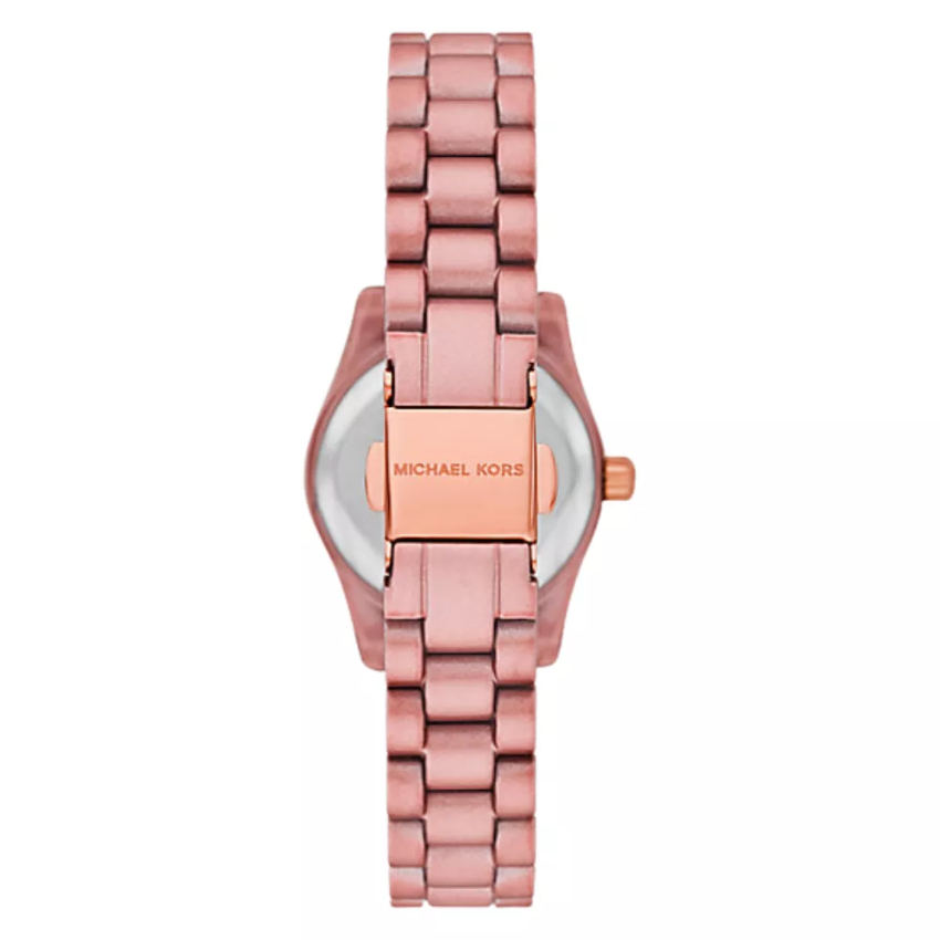 Reimagined with sparkling pavé and rose gold-tone accents for a touch of shine, our petite Lexington watch exudes everyday glamour for Spring 2025. Dipped in an iridescent pink hue for a daring twist, this limited-edition version is made with a stainless steel casebody that turns to reveal Michael Kors? engraved signature on the back and a unique identification number. Complete with a beveled topring and matching bracelet strap, this dainty timepiece will give both day and night outfits a dose of sophisticated charm.