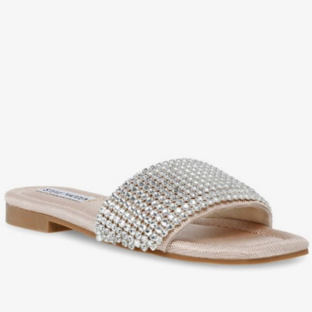 Designed with an embellished upper, these women's sandals combine fashion and comfort. The slip-on design ensures easy wearing, while the flat sole offers comfort for all-day wear. Step into effortless style with these sandals that radiate charm.
