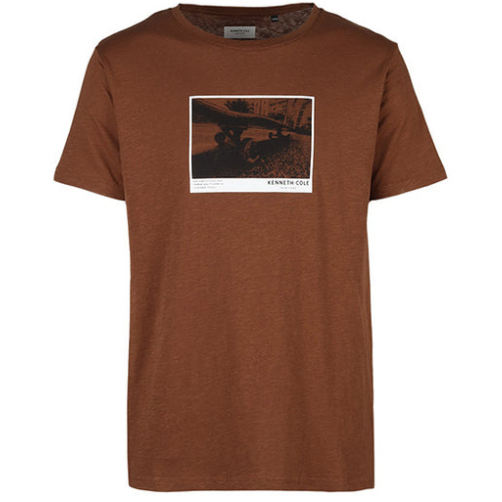 Kenneth Cole T-Shirt with Print is a round neck T-shirt in single jersey made from cotton and spandex. It adds a dash of coolness to your ensemble with a graphic print and brand logo on the front.